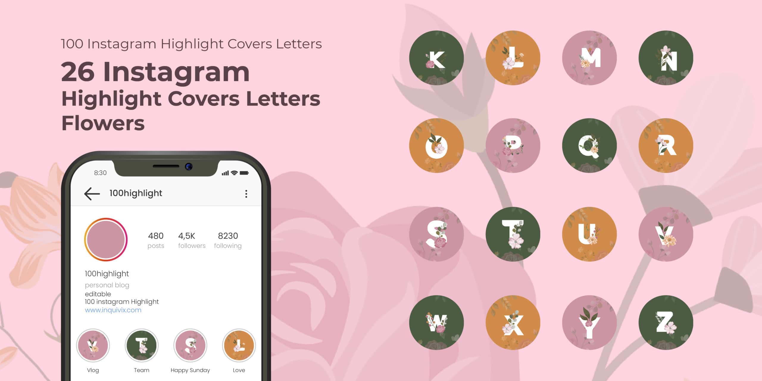 26 Instagram highlight covers letters flowers