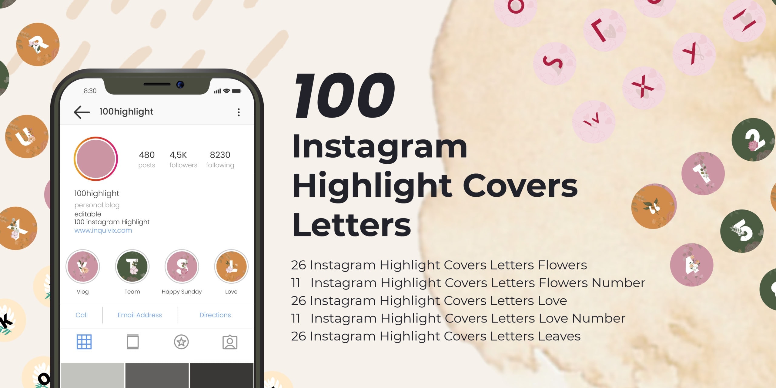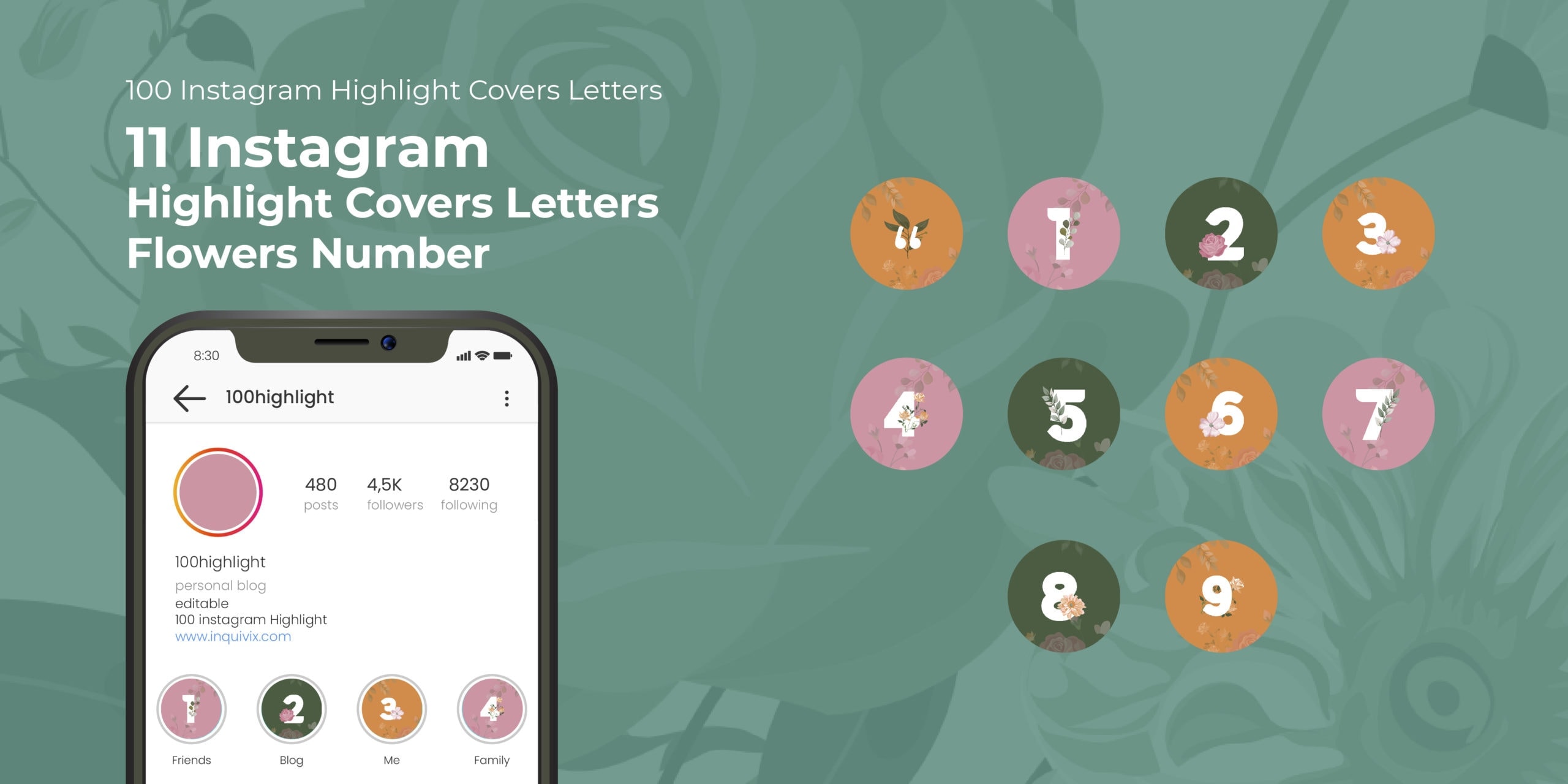 11 Instagram highlight covers letters flowers number